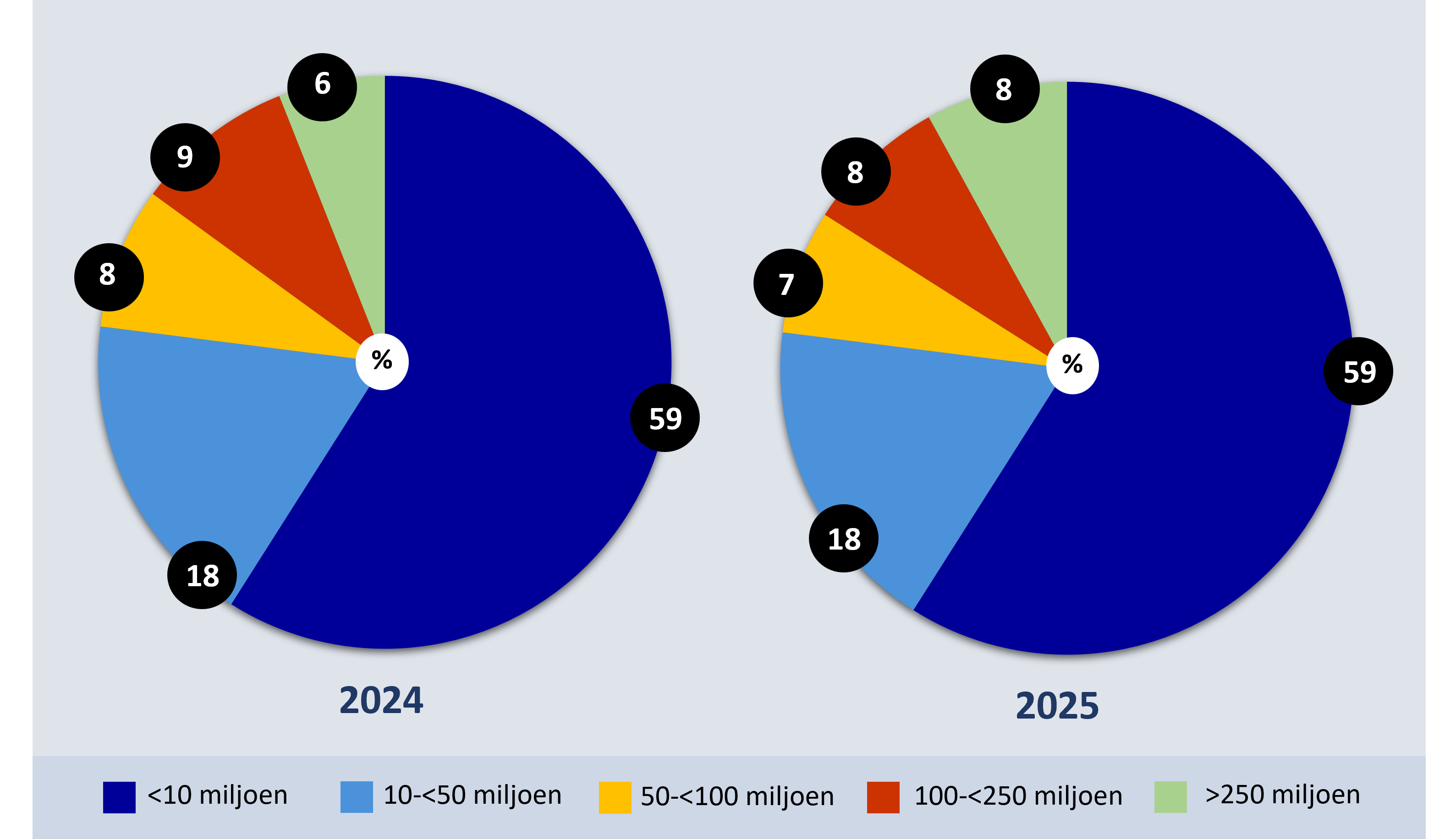 Verdeling aantal ondernemingen qua omvang (bruto omzet)