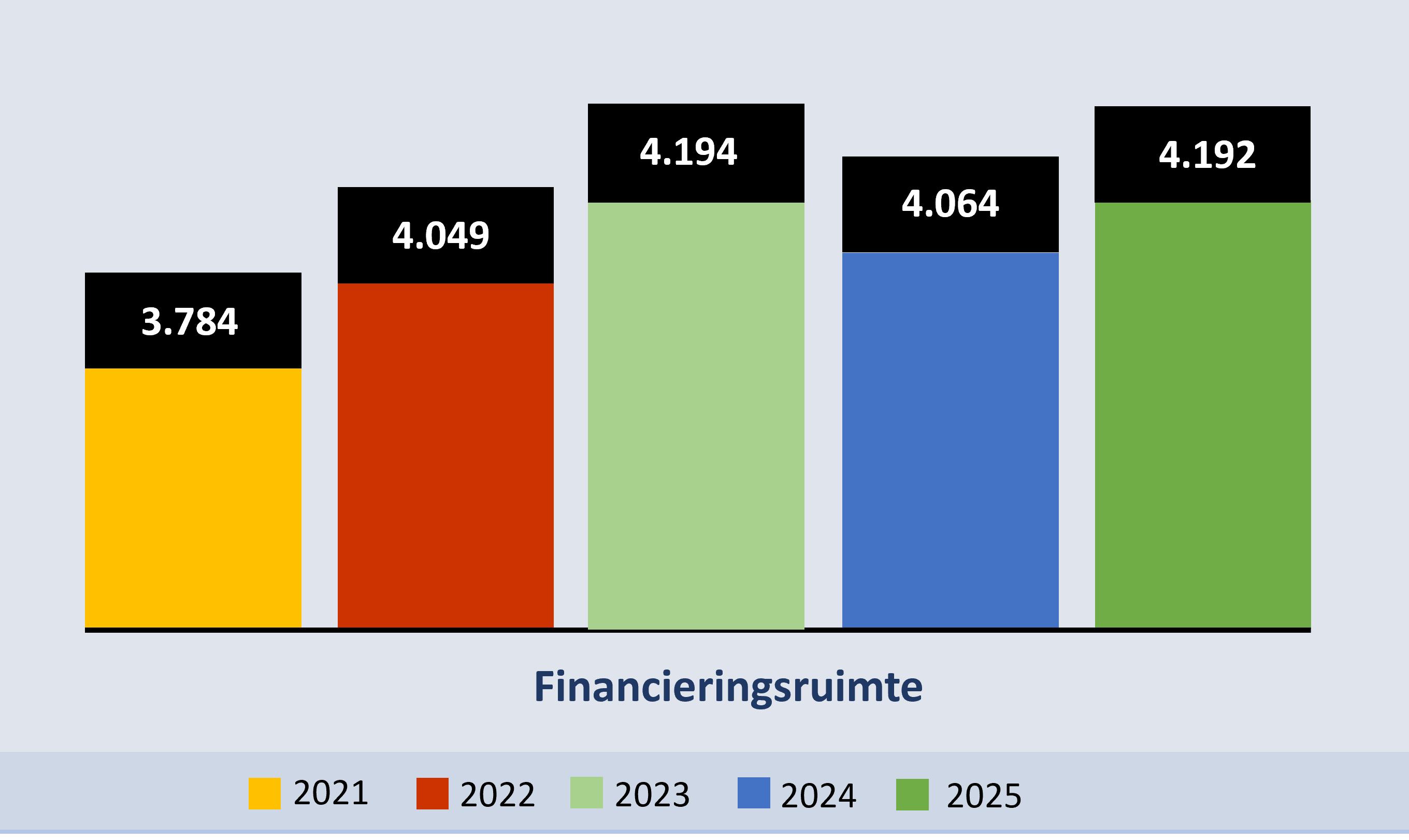 Beschikbare financieringsruimte per einde jaar in miljoen €